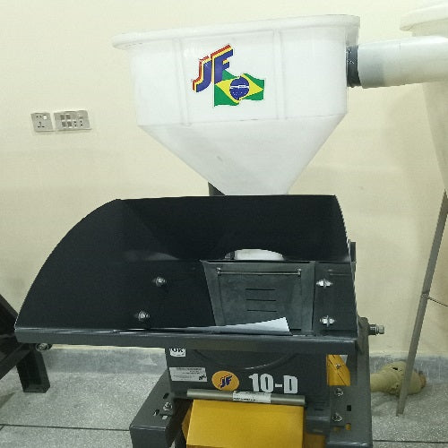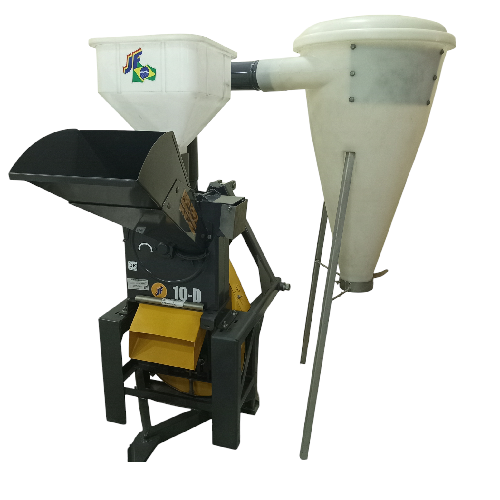 Fodder Processors with productive capacity according to the technical specifications table of this document, equipped with knives and hammers built in special and hardened steel, complete rotor in carbon steel, moving hammers with 4 working lifes, adjustable counter-knife built in special steel, sievesof 0,8mm, 1,5mm (JF 1D only), 3mm, 5mm, 10mm and flat bottom for special usage in maize grain, maize cobs and green products in general (forage), optional cyclones, bases for driving by electric motors, diesel/gasoline, 3-point likage/ tractor PTO. In order to know versions and accessories available as well as required power for each model, please check the technical specifications table.