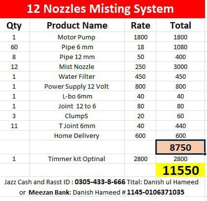 Nozzles: Spray fine water mist into the air. These can be low-, medium-, or high-pressure types.